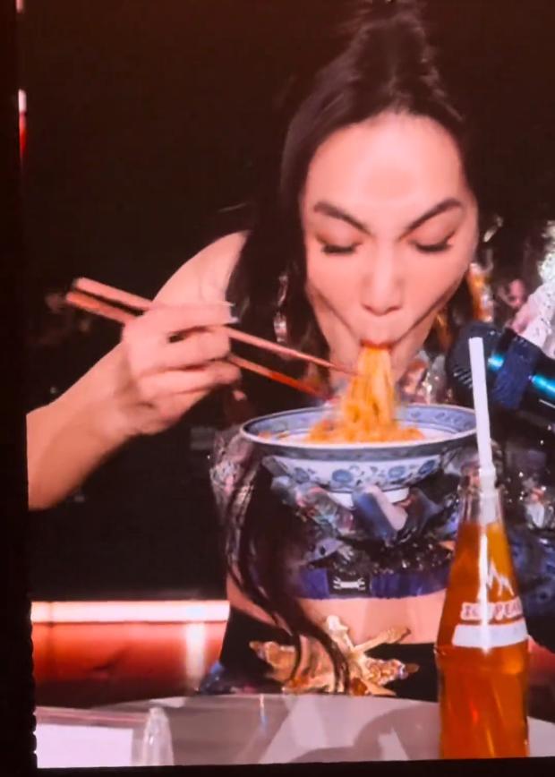 除了吸腹动作,她在演唱会上的吃面名场面,更是火出了圈,甚至带火了西安的面食。