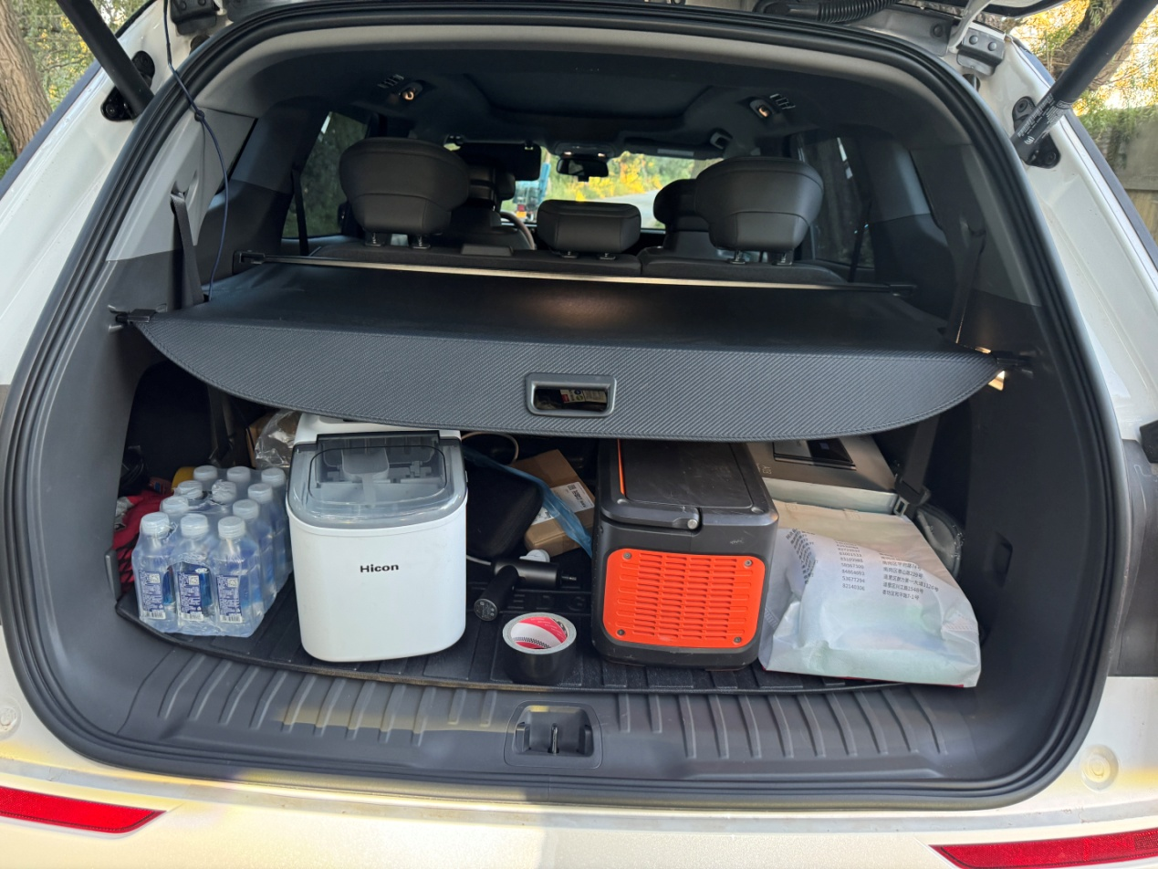 看看我这一车的装备,移动电源,制冰机,两个大件,还有一些常备物品,反正都是要住宾馆的,所以没有准备太多的露营装备,锐界L的超大后备箱真不是盖的,三排座椅放倒之后,瞬间空间增大很多的,尤其是我选的232,后面两排都能放倒,睡三个人都没有问题的