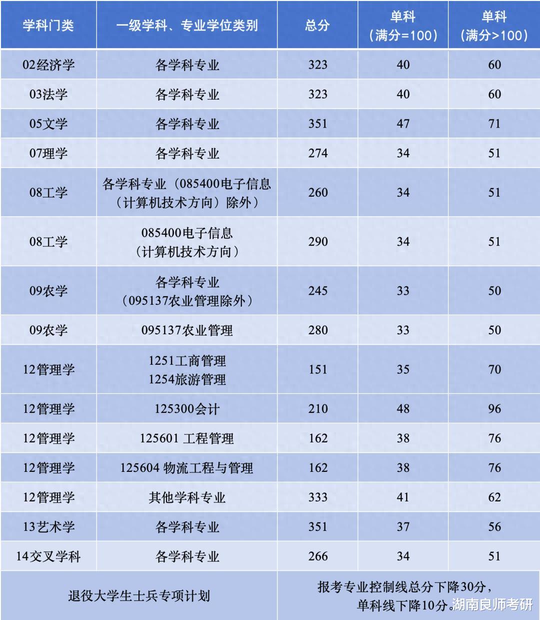 5.报考“退役大学生士兵”专项计划的考生,申请调剂到普通计划,其初试成绩须达到调入地区相关专业所在学科门类的全国初试成绩基本要求。符合条件的,可按规定享受退役大学生士兵初试加分政策。