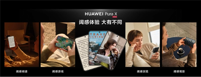 作为首款全面搭载鸿蒙操作系统 5的新形态手机,其通过1610阔型设计一举打破了移动终端的形态边界,更基于鸿蒙生态,为用户打造了阔感阅读、阔感观影、阔感浏览、阔感游戏等阔感场景体验,入眼便是沉浸无黑边的极致视觉感受,全方位满足用户日常生活中的便捷、智能需求。以阅读场景为例,华为Pura X的阔型屏以接近纸质书的视觉效果将内容呈现,带来极佳沉浸感,AI眼动翻页功能让双手得以解放,配合AI护眼模式,舒适又高效便捷。