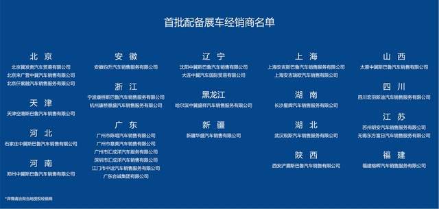 新款SUBARU BRZ STI Sport锋芒限量版将在以下城市率先亮相,展车展示时间请洽询当地授权经销商。