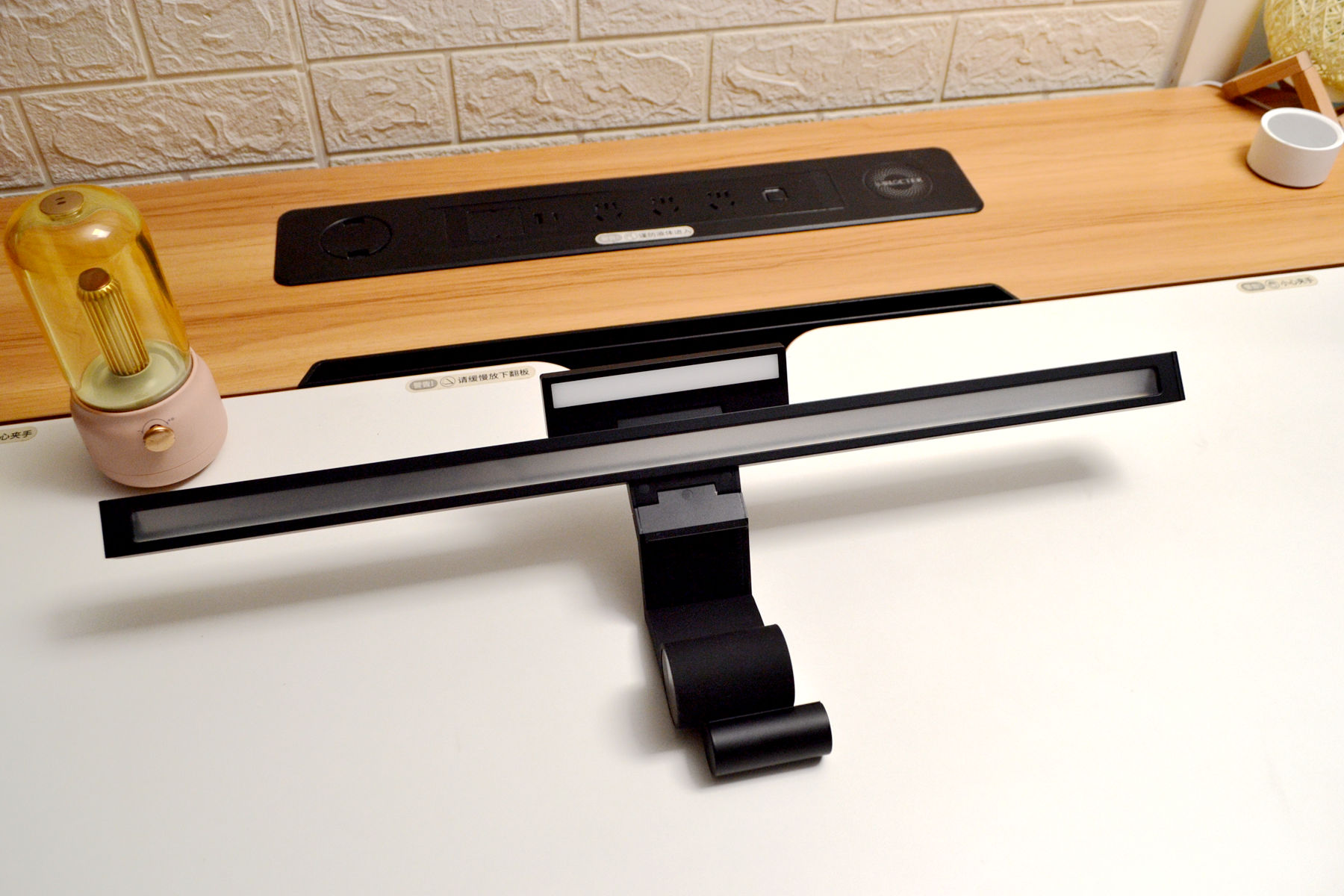 55cm的灯体往27寸显示器上一挂,尺寸刚刚好;换34寸带鱼屏也不局促,光线能均匀铺满整个桌面。全黑机身和我的机械键盘、无线鼠标都完美搭调,不管是工业风还是ins风桌面,都能无缝融入,颜值党表示很满意。