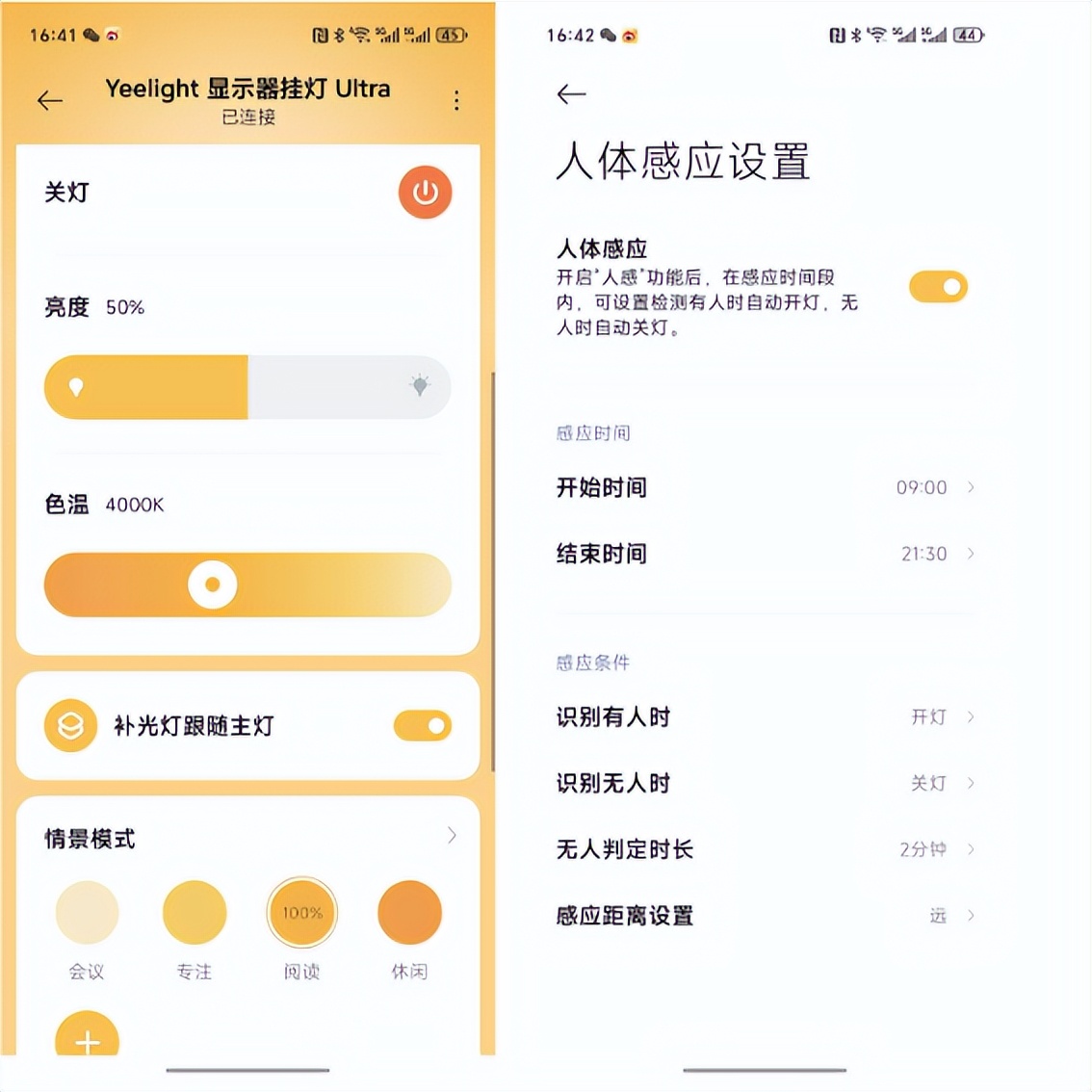 最重要的是这款屏幕灯还支持米家APP,在手机上就能调亮度、改色温,还能设置“补光跟随主灯”,开办公灯的同时补光灯自动亮,视频会议再也不用手忙脚乱。我还把它和小爱同学联动,喊一句“打开桌面灯”,它就乖乖响应,科技感直接拉满。