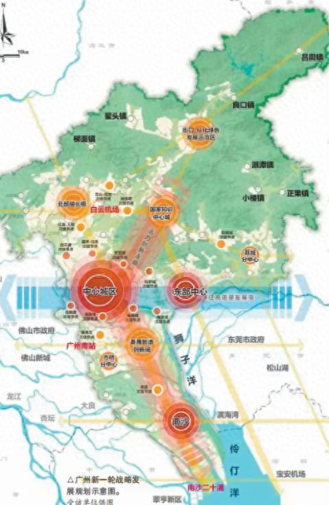 一、突围之战:广州为何必须“东进南拓”作为传统一线城市,广州的光环之下潜藏着紧迫的“核心瓶颈”。老城区如越秀、荔湾,开发强度几近饱和,历史保护与城市更新的矛盾突出,天价土地成本与复杂权属关系,严重束缚了新兴产业所需的空间载体。与此同时,城市病日益凸显:交通脉络承压、公共资源分布不均。更为严峻的是,在粤港澳大湾区竞合新局中,深圳的科技创新、东莞的先进制造迅猛崛起,广州若固守以“珠金琶”为代表的旧有核心区,增长动能必将衰竭。因此,“东进”与“南拓”,绝非简单的地理延伸,而是广州破解资源束缚、重塑区域竞争力、确保未来三十年发展主动权的生死手。