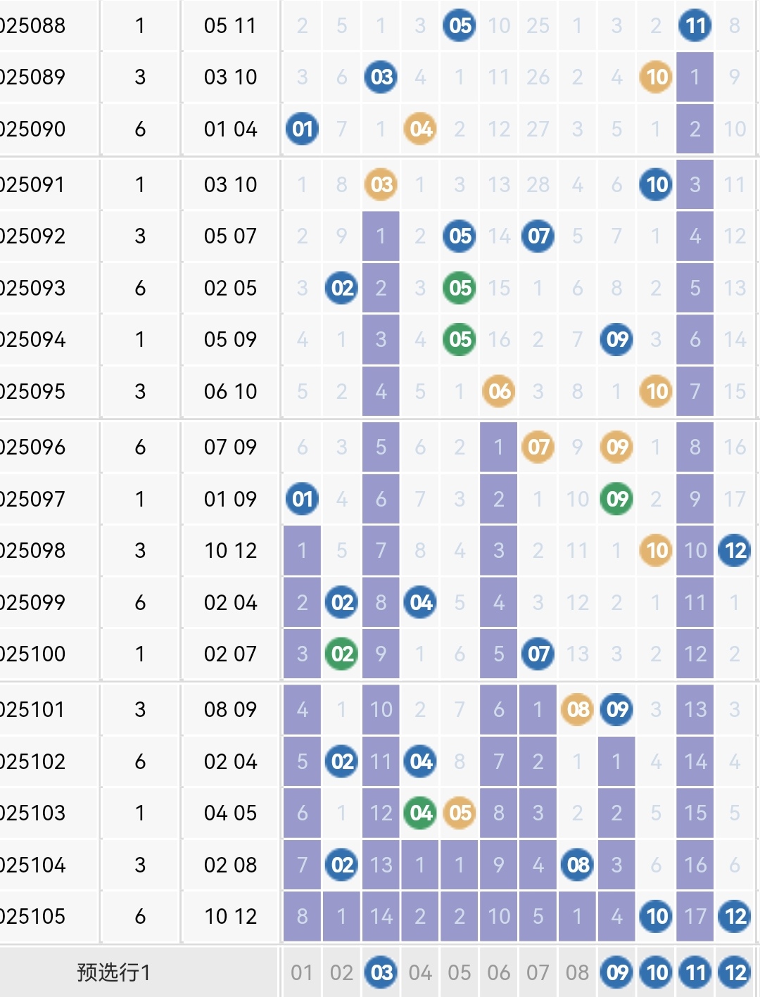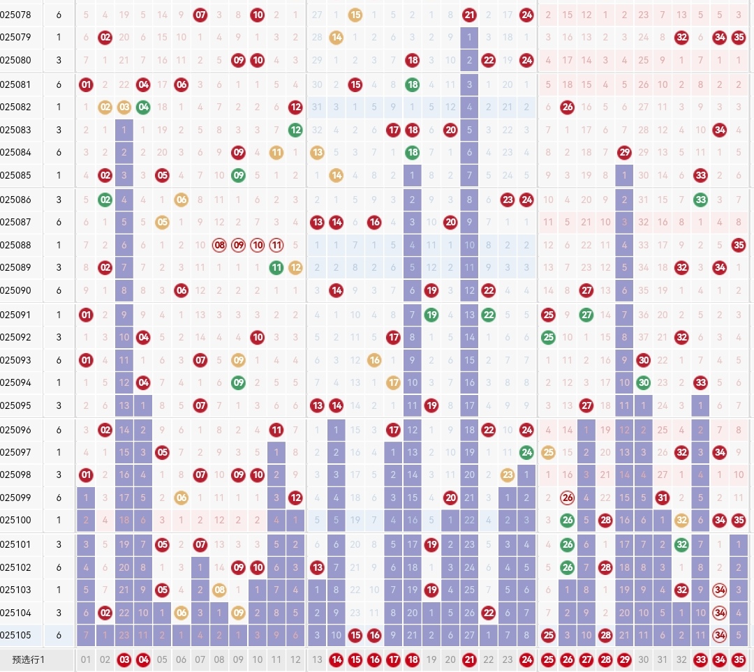 重号:与上期开奖号码相同的号码。(例如:2025年第104期与2025年第105期开奖号码都有34号。)