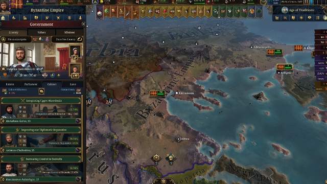 游戏的细节设计也是让人叹为观止,地图规模大得惊人,地点数量大约是前作《欧陆风云4》的7倍,3000个可选择区域,2103个国家势力,1952种不同文化和300种不同宗教,这简直就是一个小型的世界百科全书!