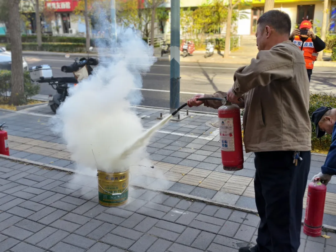 活动伊始,社区工作人员结合近期火灾案例,用通俗易懂的语言讲解了火灾的危害性、常见起火原因以及初期火灾扑救的重要性。随后,重点演示了灭火器“提、拔、握、压”的正确操作步骤:提起灭火器,拔掉保险销,一手握住喷管对准火焰根部,另一手按压手柄,左右扫射直至火焰熄灭。同时,针对居民提出的“灭火器过期如何判断”“不同火源是否需要不同灭火器”等问题,工作人员逐一细致解答,确保大家听懂、记牢。