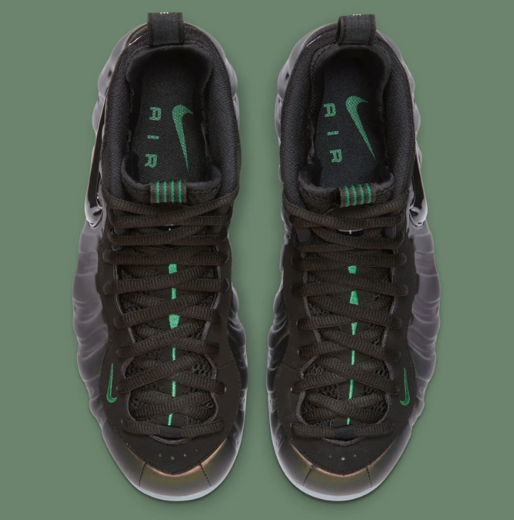 本文给大家带来的便是Nike Air Foamposite Pro即将发售的经典配色——「Pine Green」,这个配色的出现毫无疑问代表着Nike在复古风格的步伐上更近了一步;鞋履采用黑色和绿松石双色进行设计,给人带来一种幽光阵阵的感觉,不由得让人想起了甲壳虫喷以及幽灵喷等经典色彩。