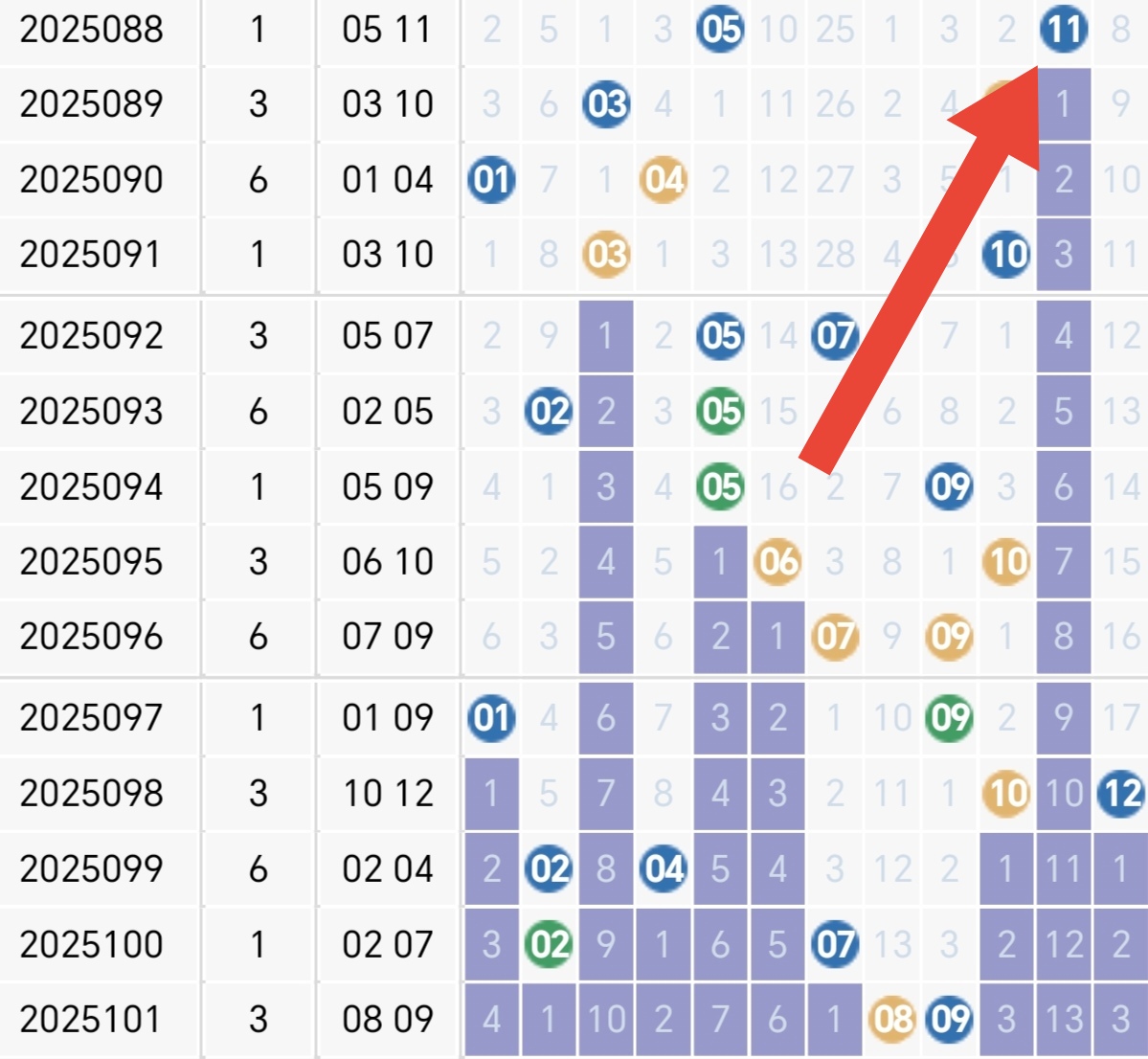 后区11号当前遗漏13➗理论遗漏6≈欲出率2.17。
