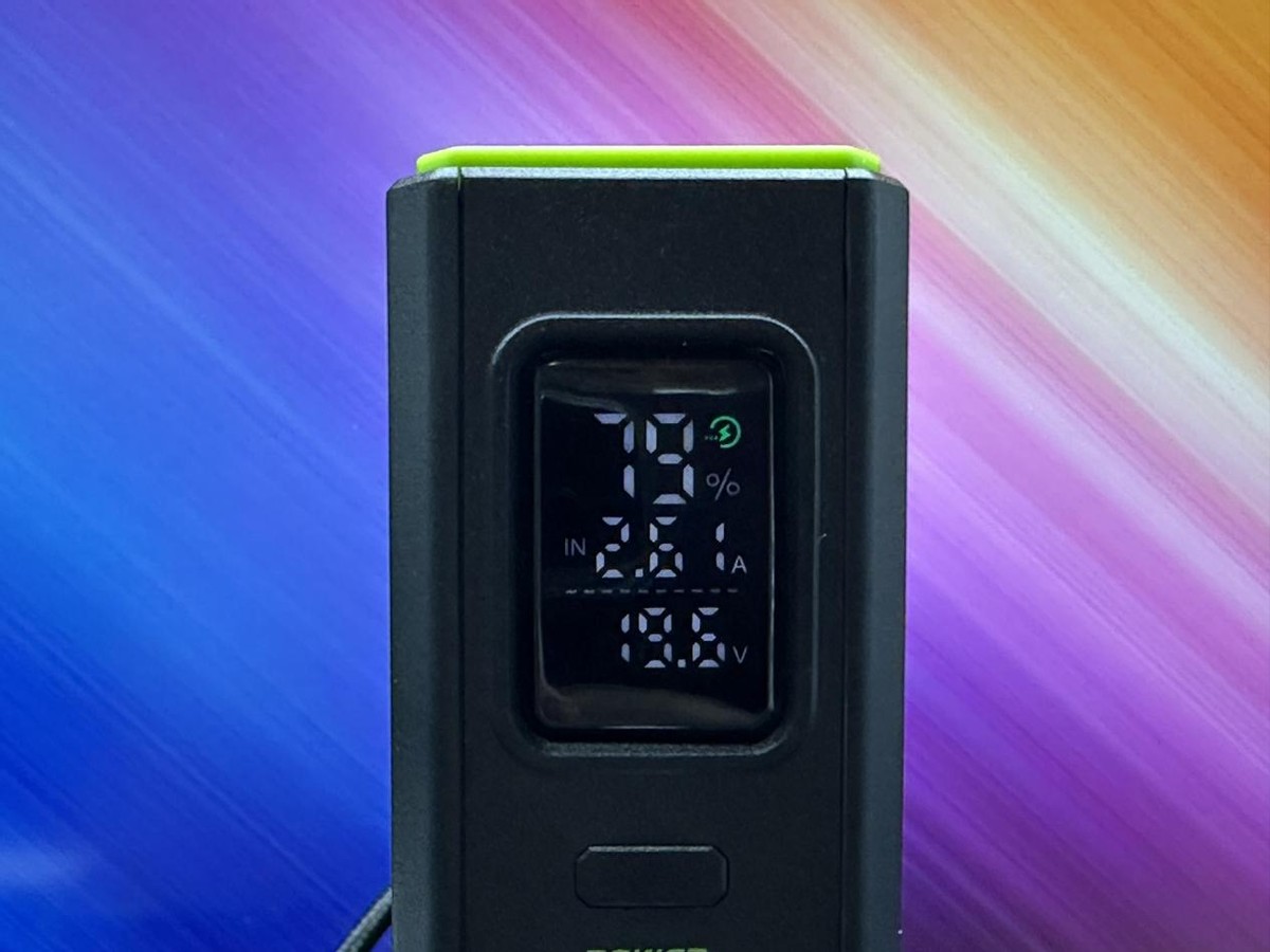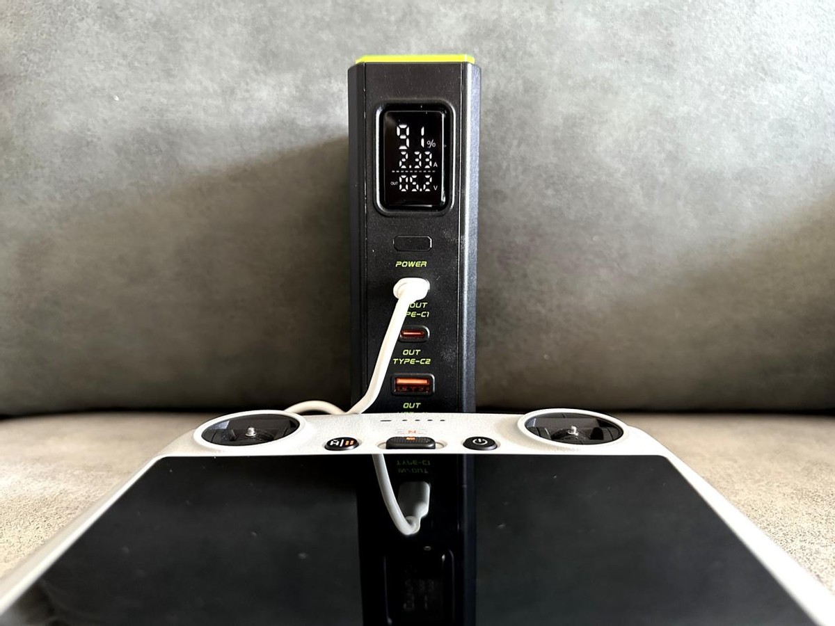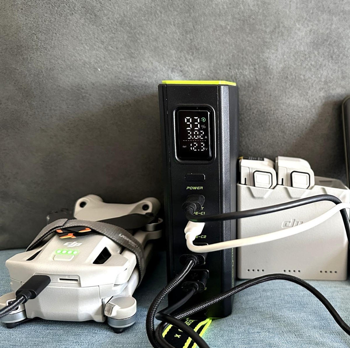 如果设备支持快充,屏幕上会显示一个绿色的快充图标。单口最支持140W输出,无论是无人机还是相机,速度都是快到飞起。以前用过一个小充电宝给无人机电池充电,电池没充满充电宝就没电了。移速能量魔方Pro Max 70000毫安时的电量可以给大疆mini3无人机充满约12次,外出再也不用担心无人机没电了。