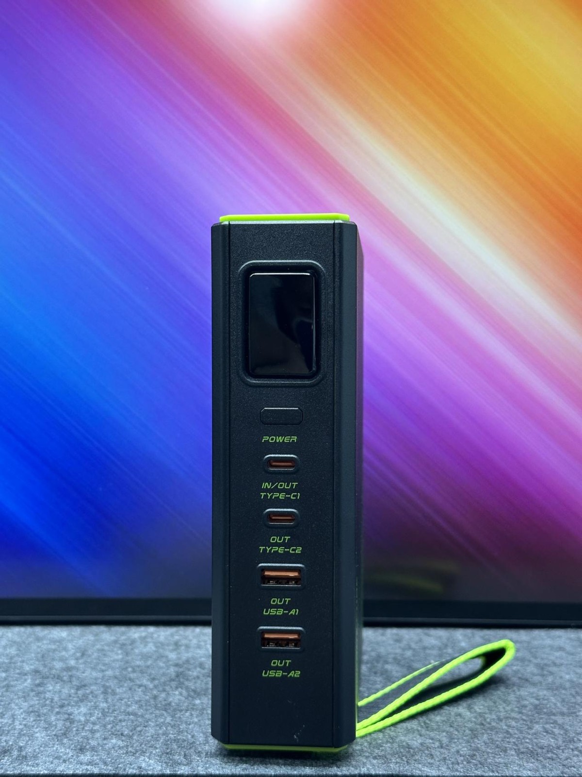 能量魔方超级充电宝也是黑色为主调,搭配绿色的撞色设计,给人一种沉稳的专业感。