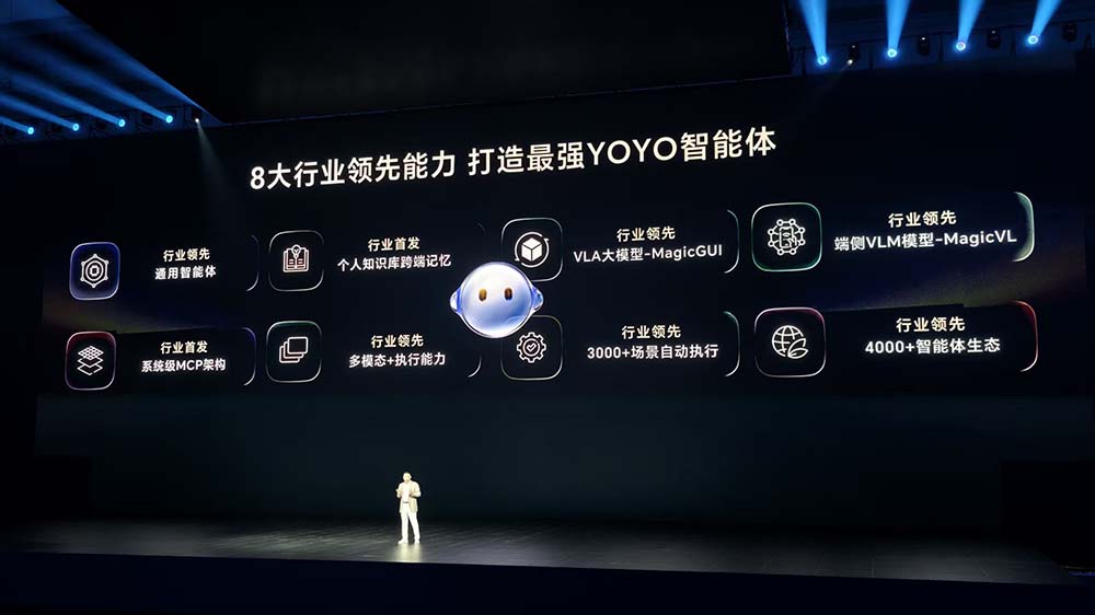 总共有8项能力据称是领先行业的,包括通用智能体、个人知识库跨端记忆、VLA大模型-MagicGUI、端侧VLM模型-MagicVL、系统级MCP架构、多模态+执行能力、3000多个场景自动执行、4000多个智能体生态打通。