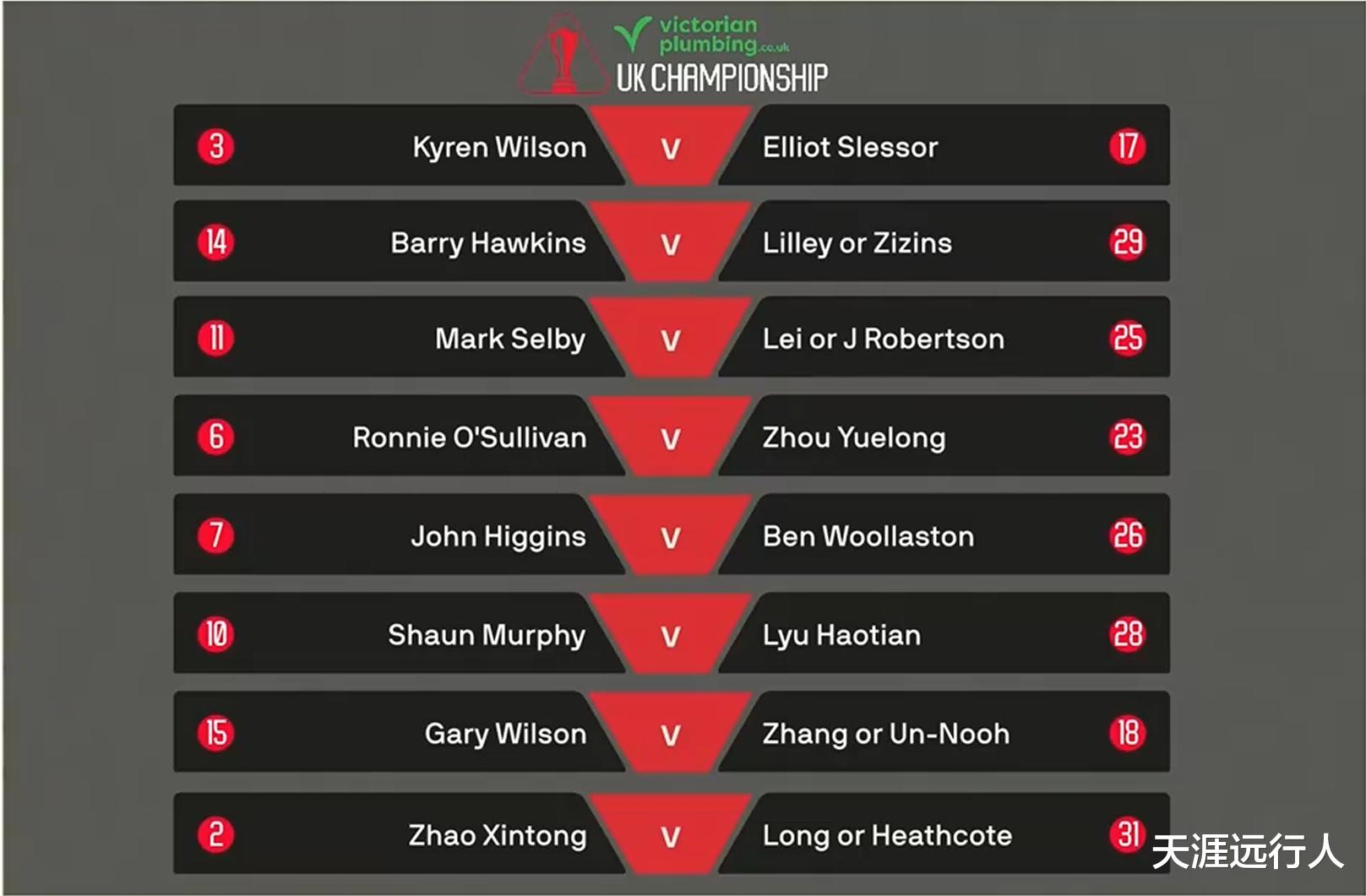 孤军作战的赵心童,落位4/4分区,如果顺利,将先后迎战加里·威尔逊和希金斯跟肖恩·墨菲之间的胜者;晋级半决赛之后,将遭遇奥沙利文、塞尔比、凯伦·威尔逊之间的胜者。