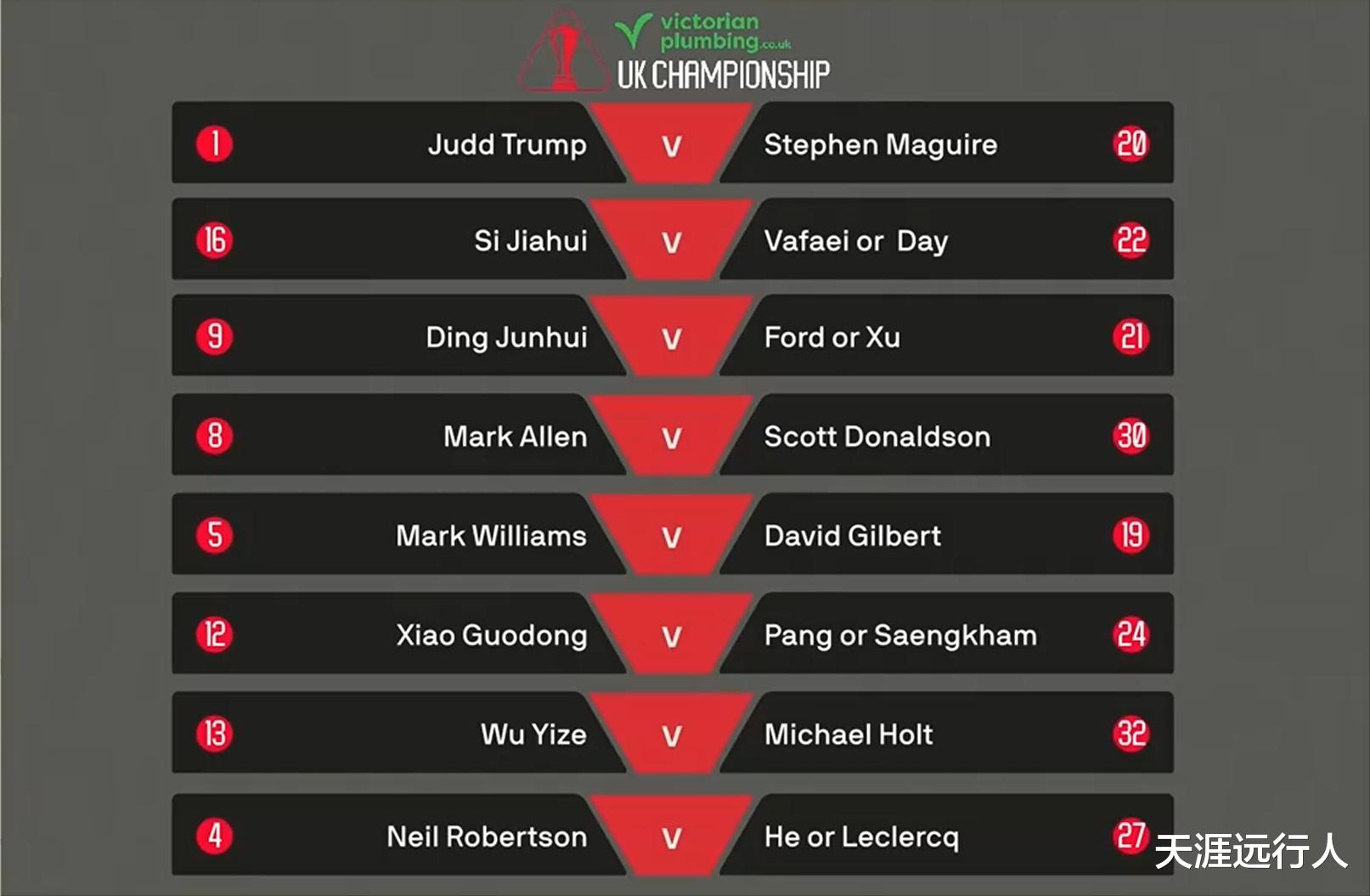 丁俊晖、肖国栋、吴宜泽、斯佳辉等中国选手扎堆,卫冕冠军特鲁姆普、马克·艾伦与丁俊晖斯佳辉同处1/4分区。