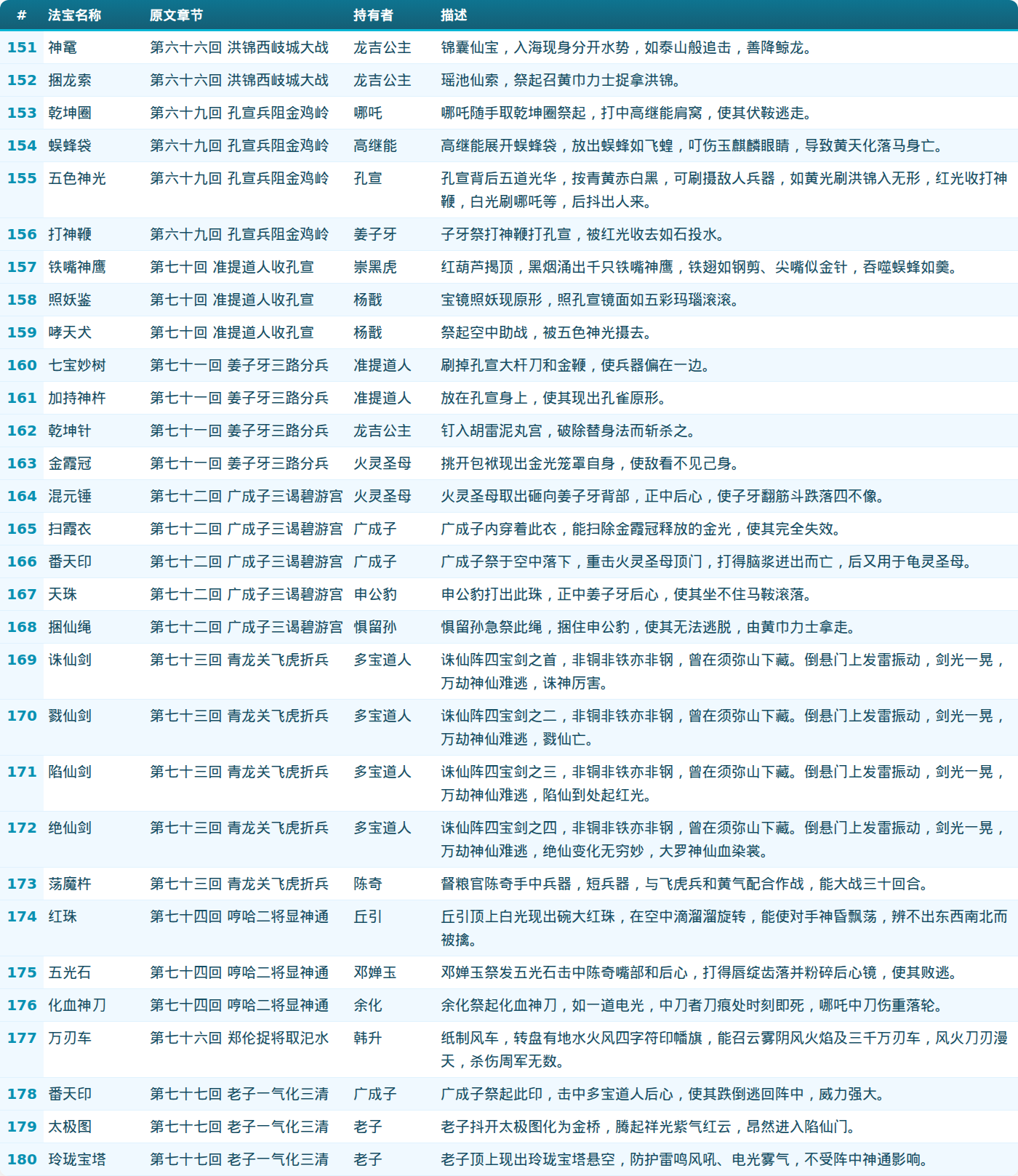 第六部分:法宝列表(151-180)