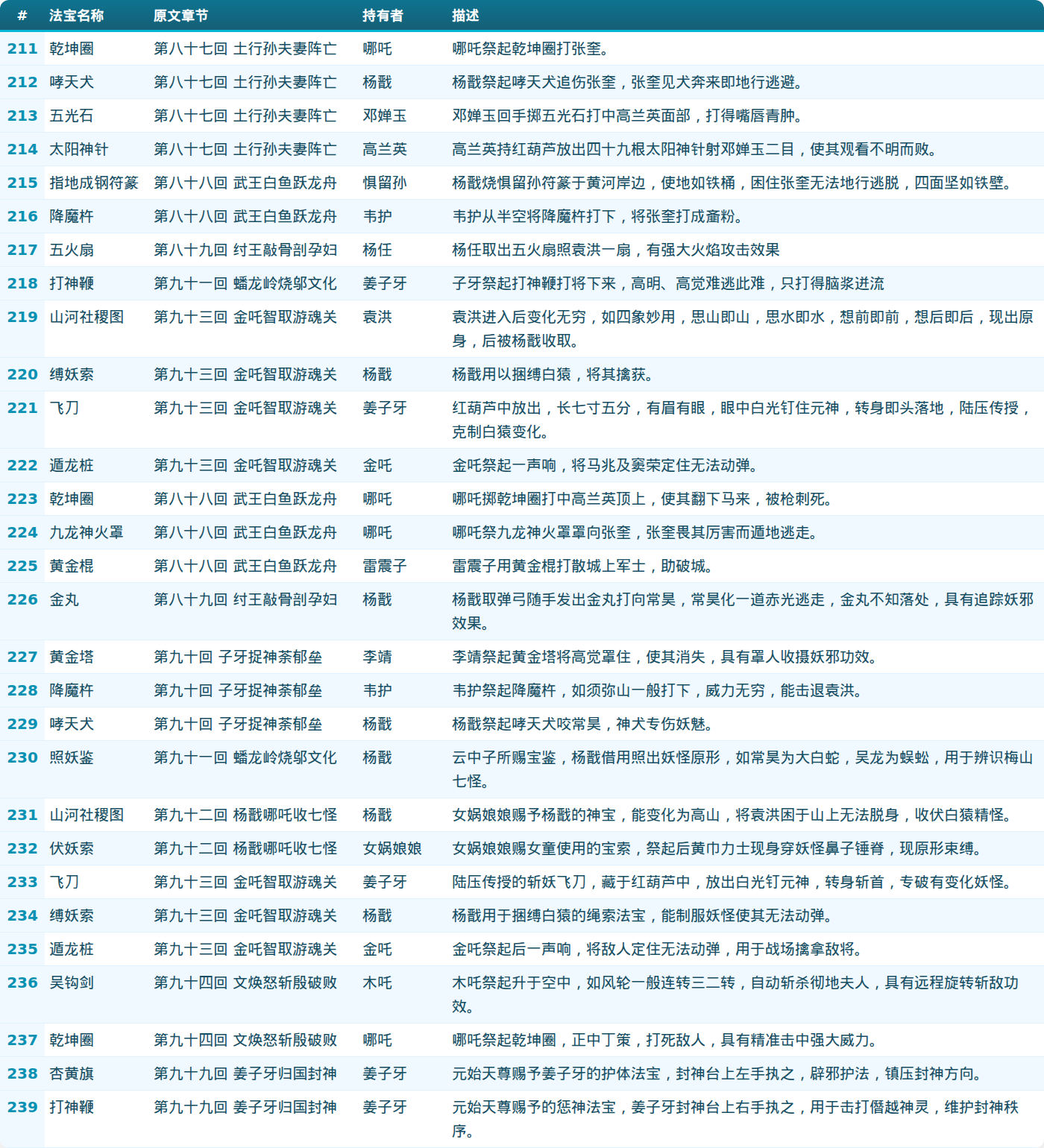 第八部分:法宝列表(211-239)