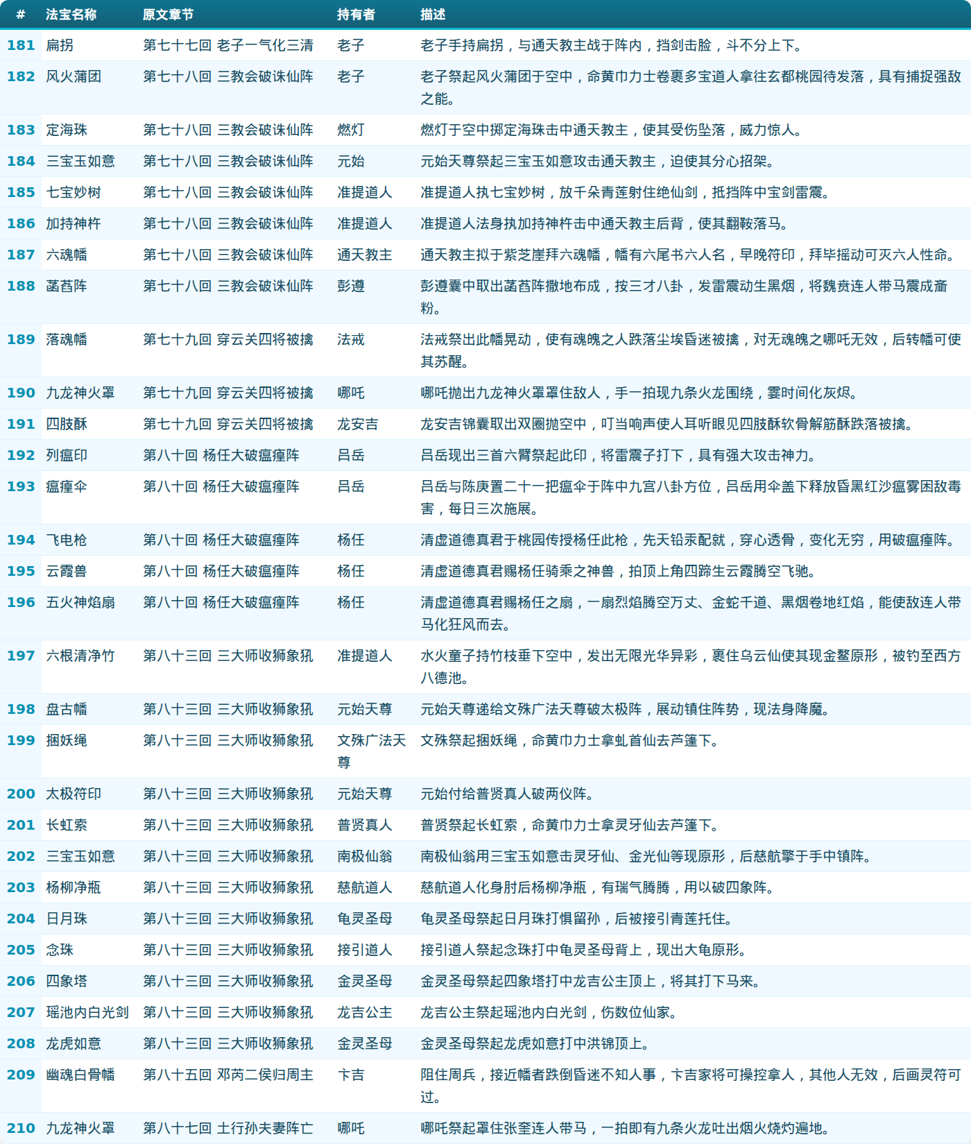 第七部分:法宝列表(181-210)