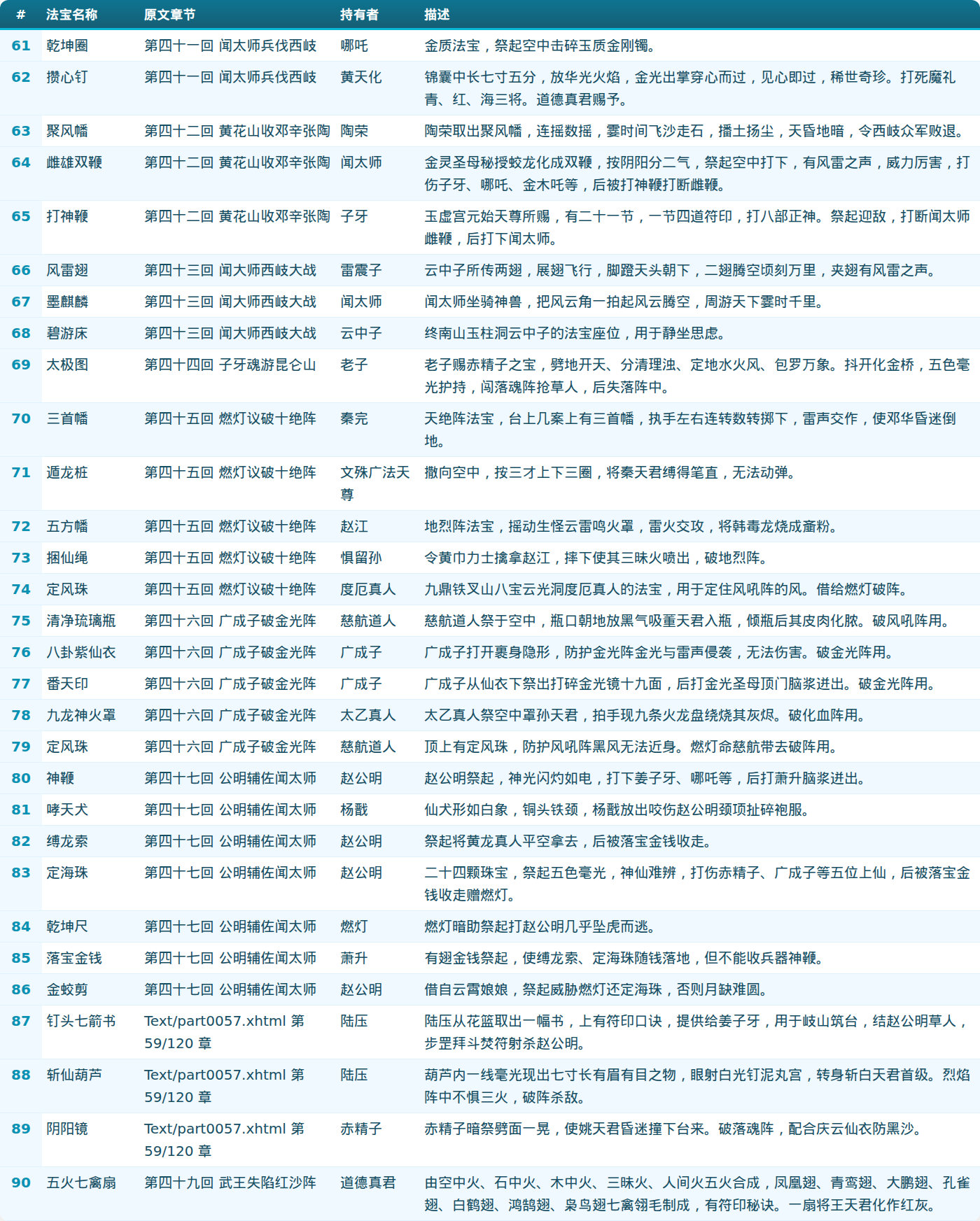 第三部分:法宝列表(61-90)