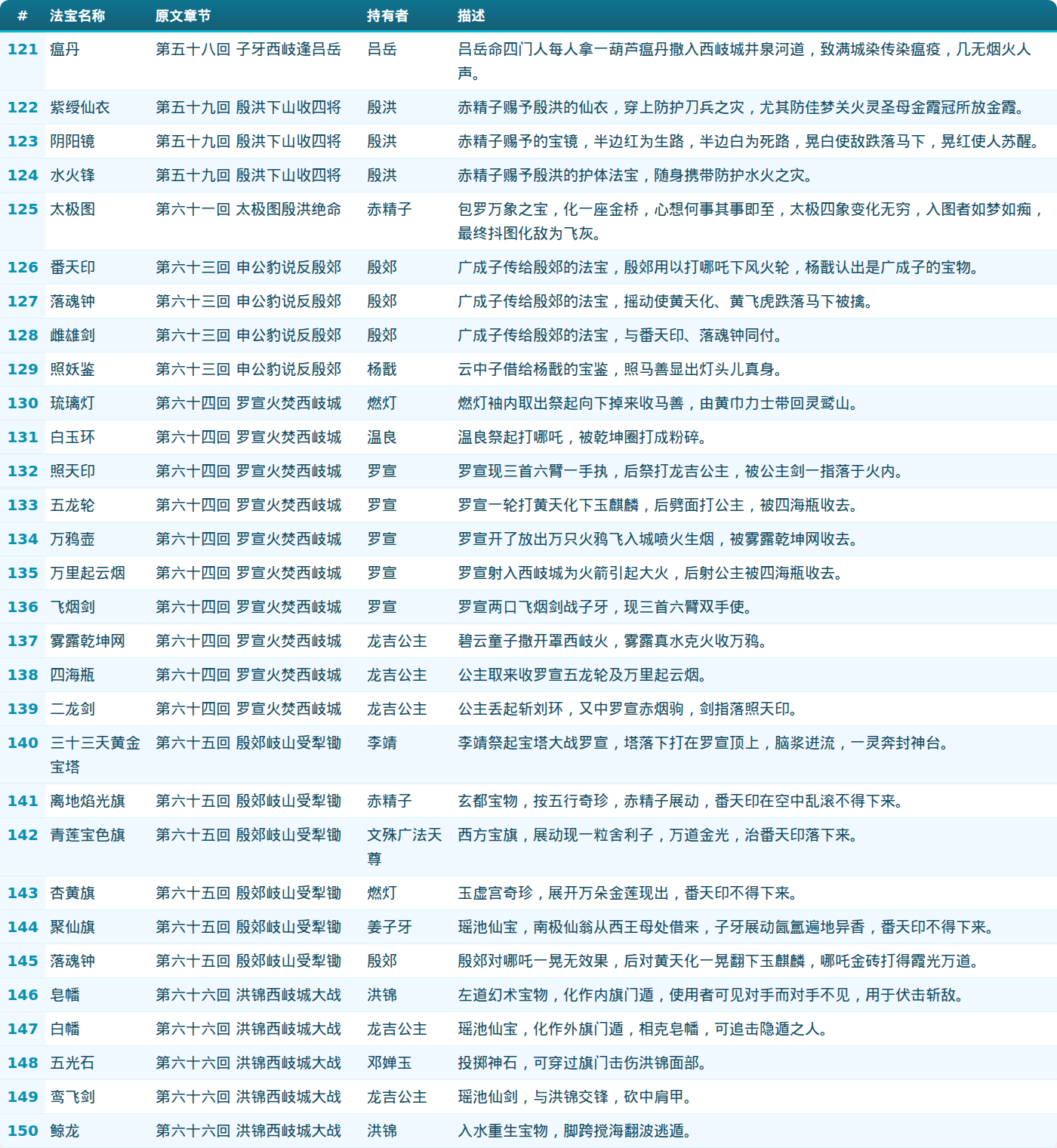 第五部分: 法宝列表(121-150)
