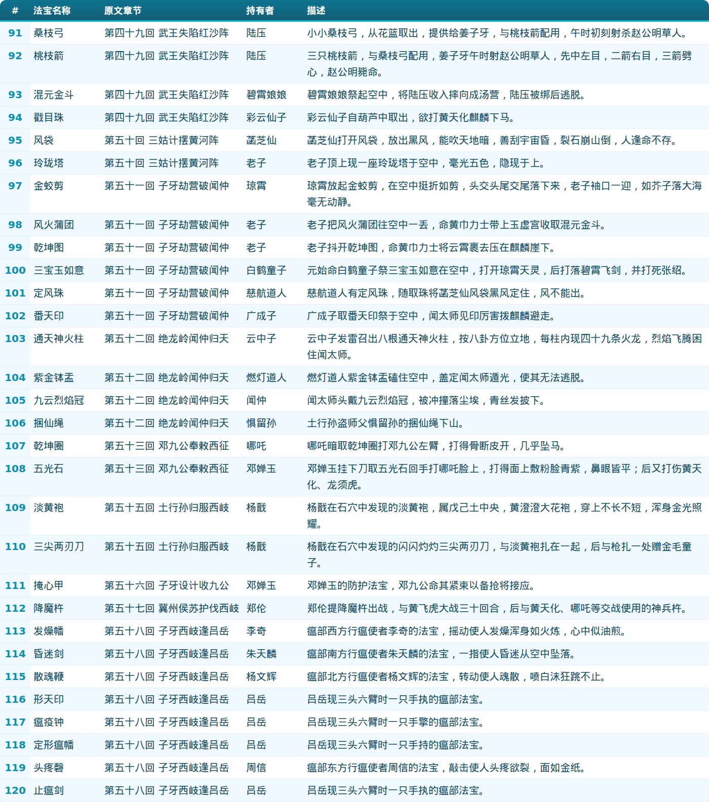 第四部分:法宝列表(91-120)