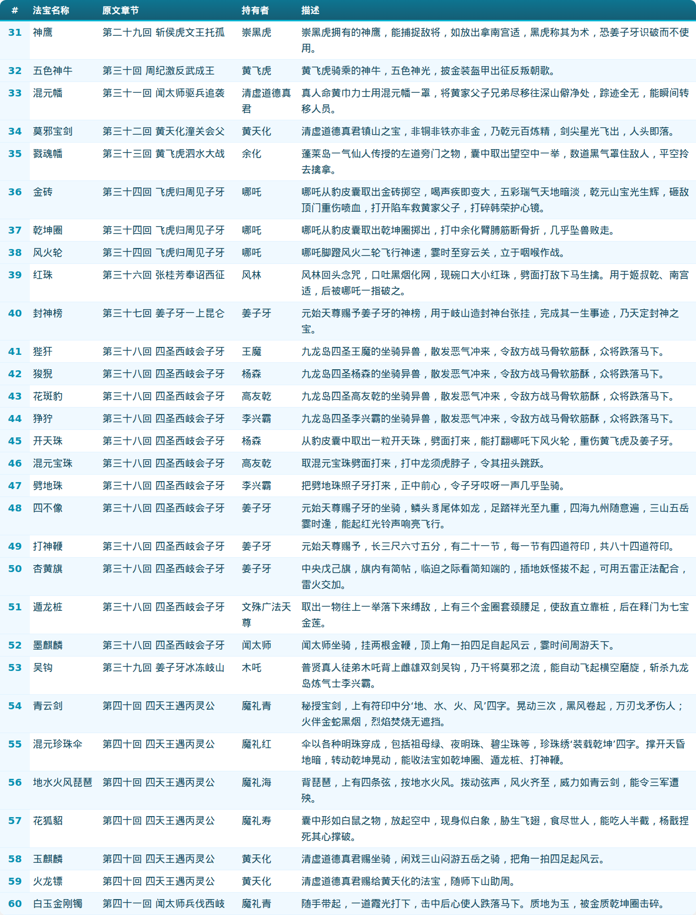 第二部分:法宝列表(31-60)