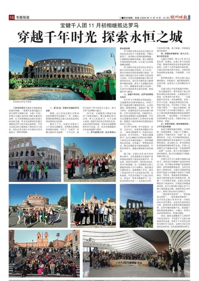 今年11月,宝健公司带领千名宝健精英来到了这座历史悠久的永恒之城——罗马,一起探寻神秘罗马,学习古罗马人坚韧不拔的意志和创新精神。