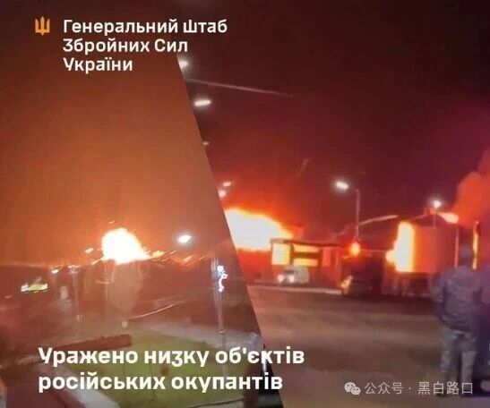 克里米亚辛菲罗波尔GRES的油库,费奥多西亚、赫瓦尔迪斯克、萨基和塞瓦斯托波尔的目标也遭到袭击,并发生爆炸和大火。