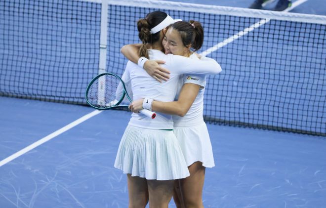 北京时间11月19日,2025年全运会网球女双决赛,广东组合、4号种子王欣瑜/袁悦对阵四川组合、2号种子王雅繁/蒋欣玗。王雅繁/蒋欣玗以6-1、2-6和10-6胜出,最终总分2-1战胜王欣瑜/袁悦夺得女双金牌,而王欣瑜/袁悦获得女双银牌。