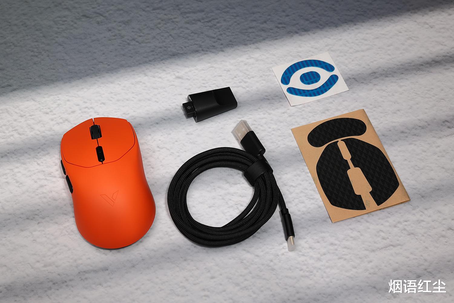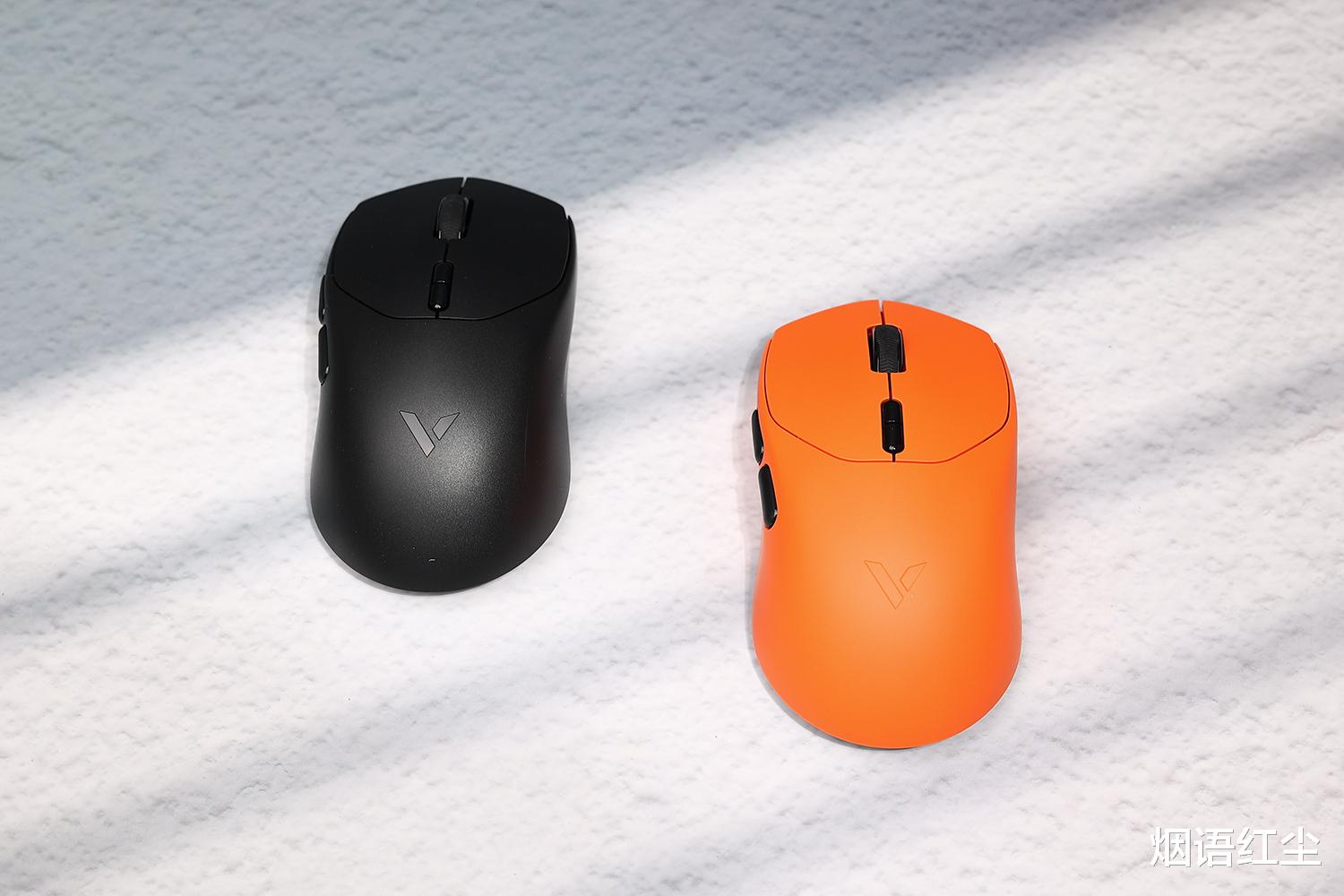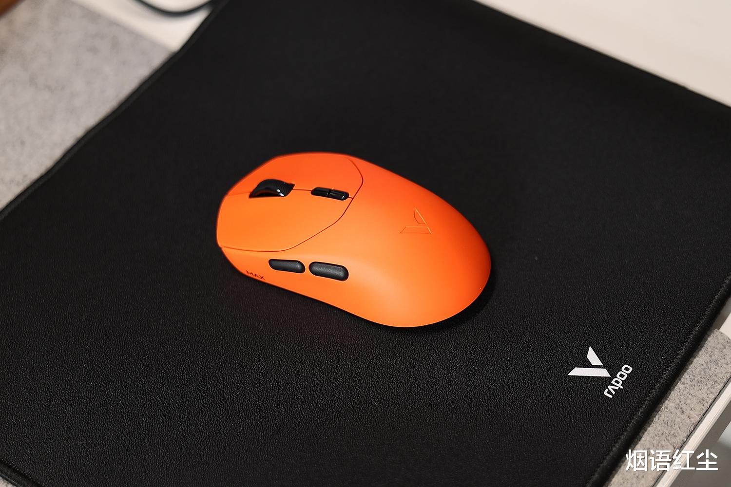 打开包装盒的瞬间,焰影橙配色的雷柏VT1 MAX鼠标便以其独特的视觉冲击力吸引了我,这种介于火焰与落日之间的橙色调,配合鼠标流畅的线条,呈现出一种蓄势待发的动感美学。鼠标表面采用了高级的亲肤防滑涂层,触感细腻而不失摩擦力,即使在长时间激烈游戏中也能保持稳定的握持感。此外VT1拥有两类的表面触感,有跟VT1 MAX一样的亲肤防滑涂层(焰影橙),也有类肤磨砂工艺(星空黑、皎月白),值得一提的是,雷柏VT1 MAX鼠标还支持P3无线充电模块和P5触点充底座(需另购),为我们提供了更多充电选择。在微动方面,VT1采用了1亿次欧姆龙机械微动,手感轻脆,VT1 MAX则是使用了1.2亿次 雷柏瑞讯(瑞翼鲨)定制特调光微动(按欧姆龙轻脆手感校调),同样也是手感轻脆,触发更快,同雷蛇 ROG标准。