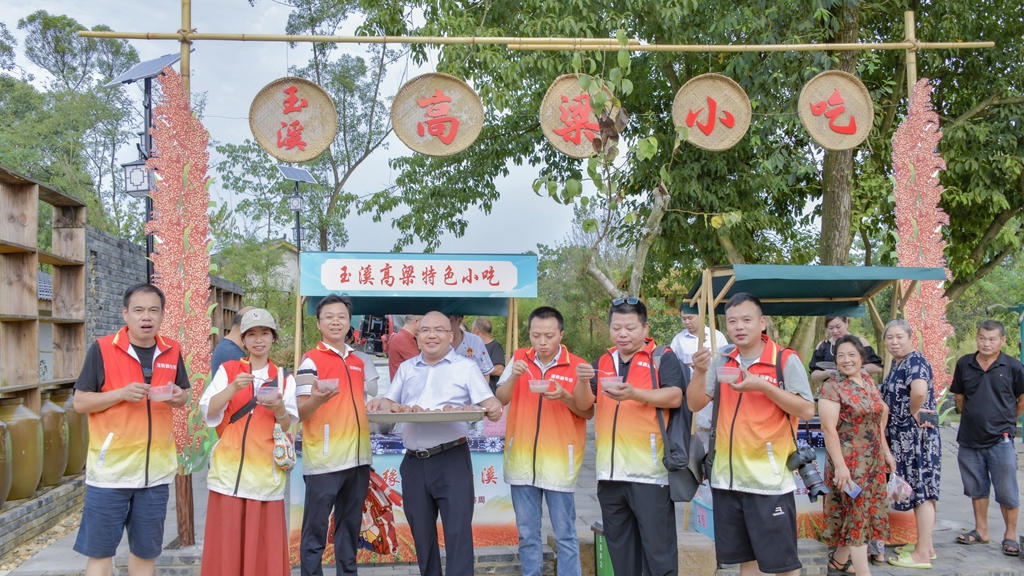 下午5点,潼南区网络人士一行冒着40度高温酷暑来到玉溪镇五通村,用相机、手机、无人机拍摄拍摄玉溪美食、玉溪非遗素材,用图片、短视频或直播等方式记录玉溪宴、五通村村晚精彩瞬间,推荐玉溪美食、非物质文化遗产和玉溪镇红高粱美景。