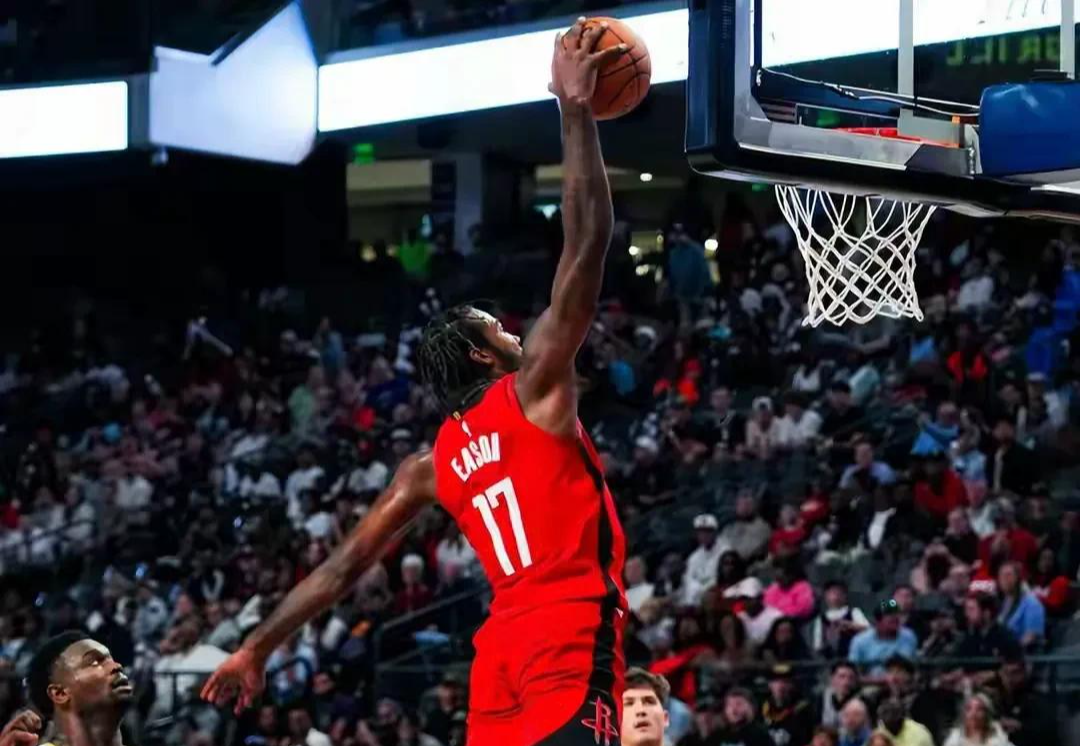 进攻端,"死亡五大"实现了功能互补与空间延展。申京以8分12篮板7助攻的全面表现承担组织核心角色,高位策应多次激活队友空切;史密斯休赛期苦练成果显现,全场16投7中轰下26分,其中三分球8中4,面对锡安防守的干拔跳投堪称无解;阿门·汤普森则贡献21分5篮板,3记三分中的2记彻底打破对手的防守预判。三节战罢,这套阵容带领火箭轰下102分,建立14分领先优势。