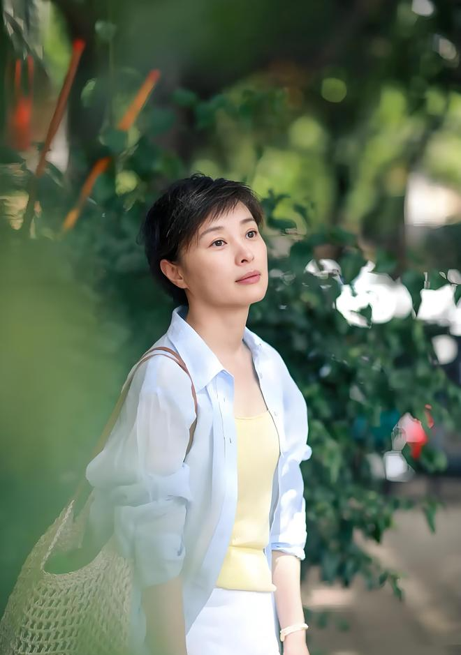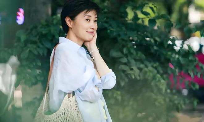 镜头里的她留着利落短发,发尾微微翘起,像沾了点春日的俏皮。脸上不见浓妆,只有淡淡的好气色,笑起来眼角细纹舒展,那是时光沉淀的温柔印记,比过度磨皮的精致更动人百倍。