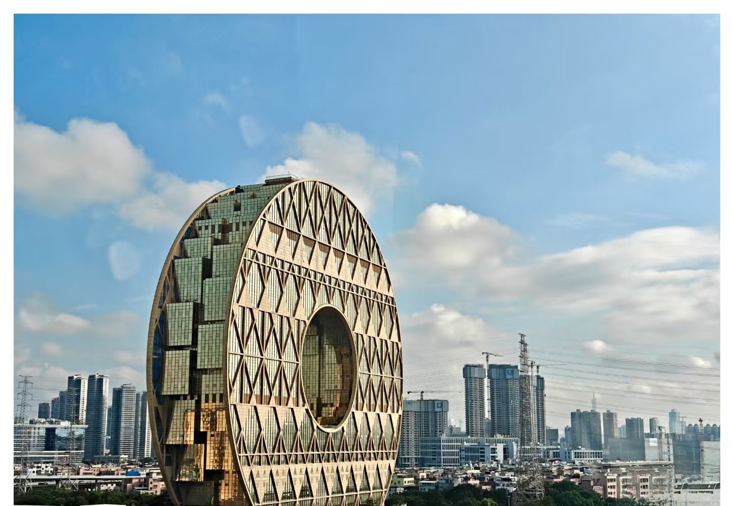 这座由意大利设计师打造的建筑,直径146.6米,高138米,远看就像一枚巨大的铜钱。设计师说灵感来自玉璧和开市锣,寓意"风生水起",但网友却给它贴上了"中国最丑建筑"的标签。