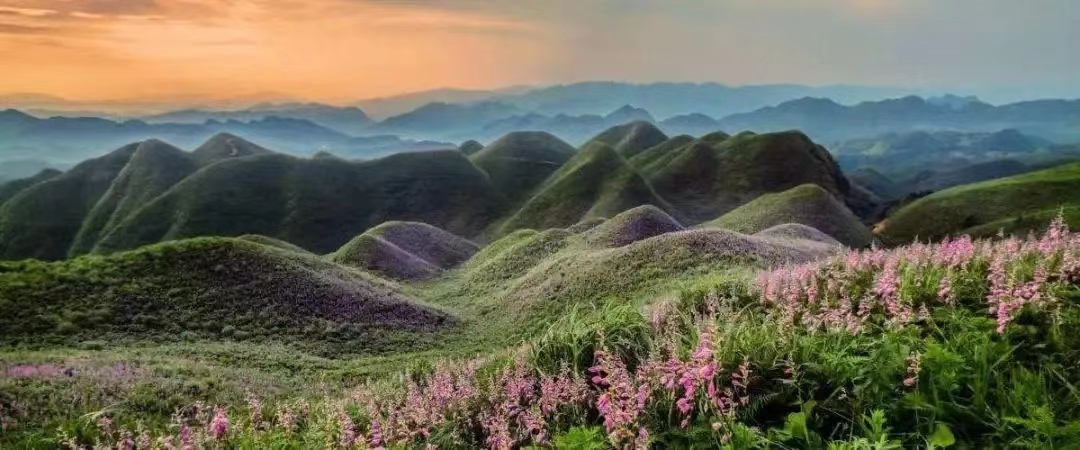 🌇傍晚时分:夕阳是最高明的调色师!把云海染成金橙、粉紫,花海也披上霞光。牵着小手,看影子在花海上拉得好长好长… 此刻,世界安静得只剩风声和我们。