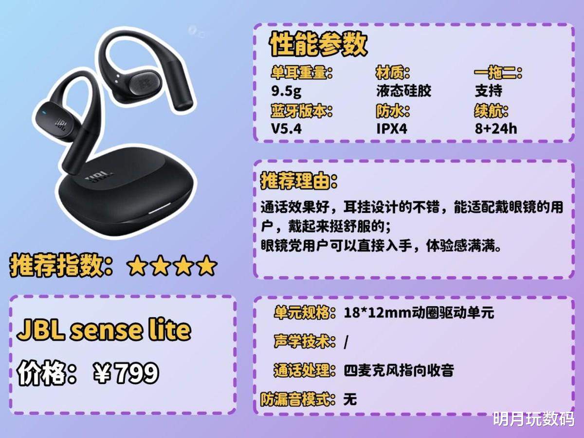 总结:戴眼镜又想选开放式耳机的朋友,JBL 这款真的可以重点考虑,它在佩戴上对眼镜党太友好了,音质和通话也没啥槽点。