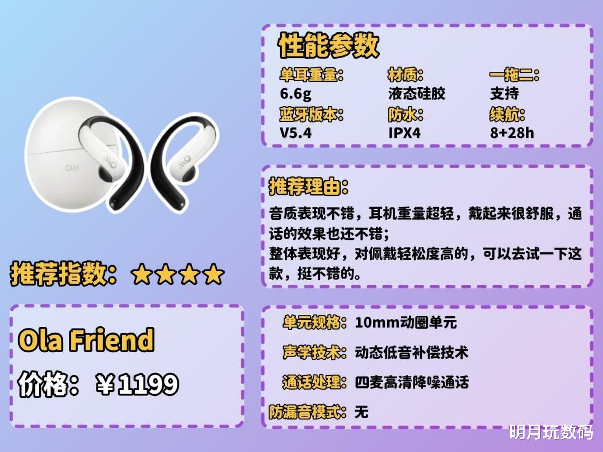 不过别担心,我专门给大家整理了 10 款口碑超棒的开放式耳机,能帮你少走很多弯路。不管你平时是通勤的时候戴,运动的时候用,还是日常随便听听,基本都能满足需求。快看看,这里面有没有你喜欢的!