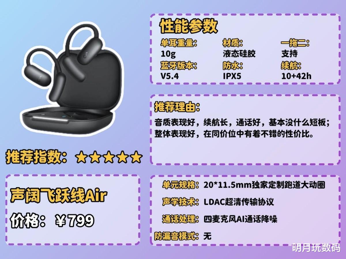 总结:声阔飞跃线 Air 各方面都很均衡,音质好、连接稳、佩戴舒服,不管是日常通勤还是运动用,它都能胜任,买它肯定没错!