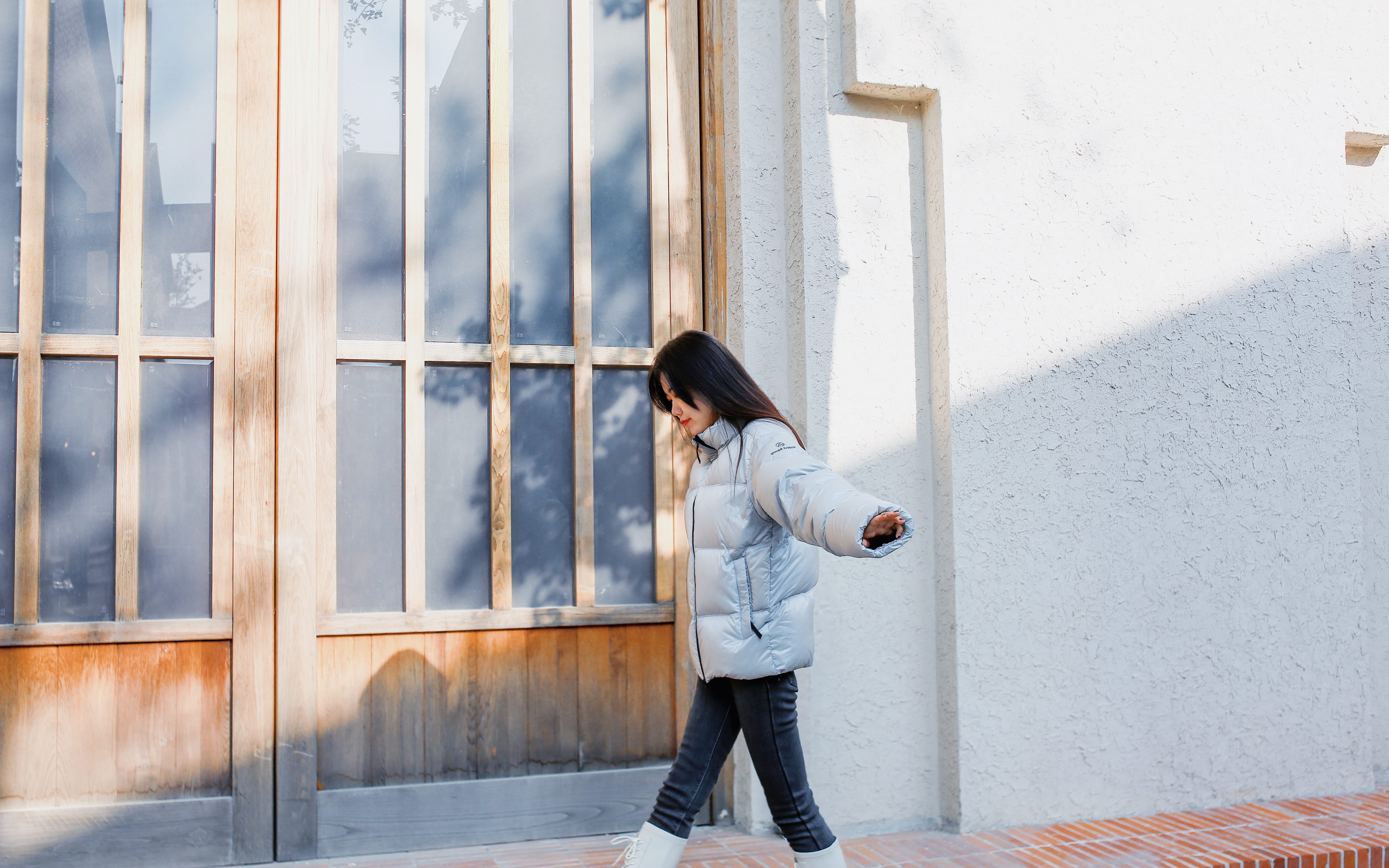 平时我的穿搭非常简单,基本就是:上身一件好看的外套,下面直接牛仔裤+靴子解决战斗,所以这次选羽绒服的时候,我第一反应也是——一定要那种“随便一穿就能出门”的百搭款。