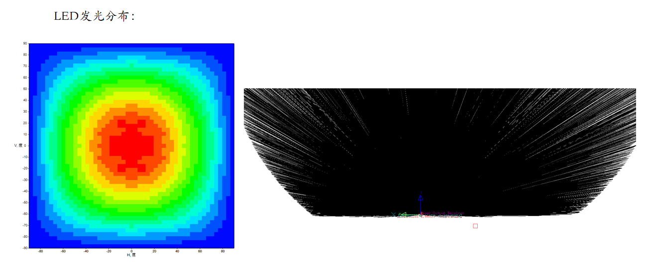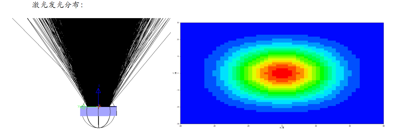 一般来说,光源光展量越小,就越便于对光源发出的光束进行操控,实现准直或者匀光照明的目的,以下给出LED与激光的发光角度分布图,其中激光的发光角度较小,LED为半个球面内发光,