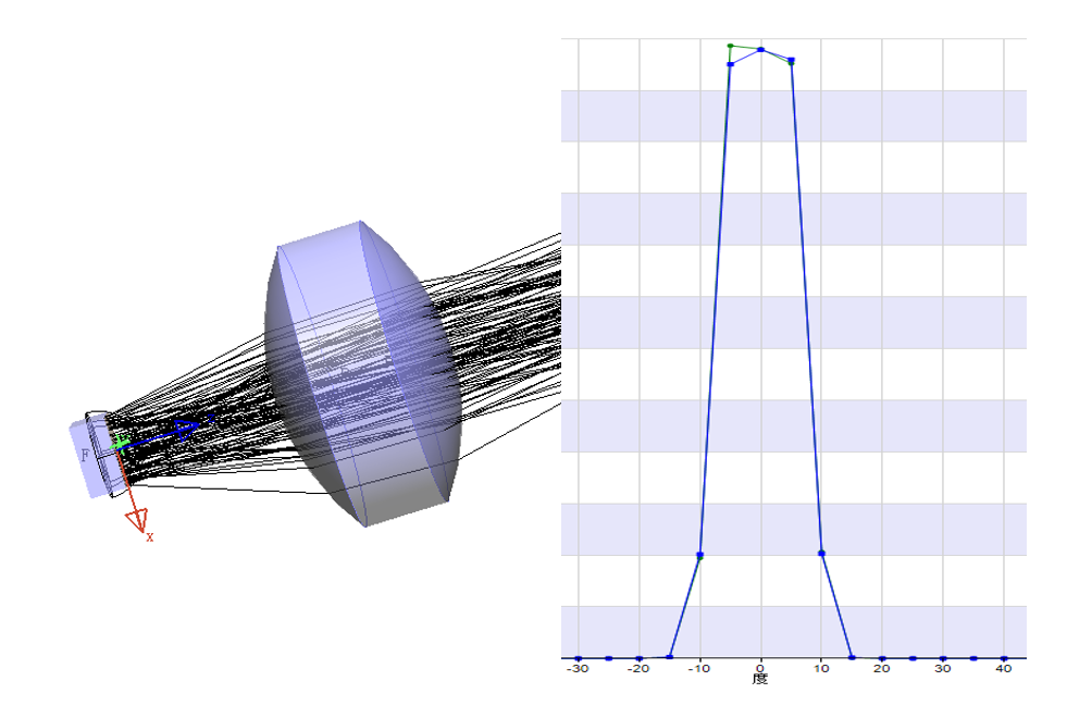 对于小角度发光的激光光源来说,则可以使用凸透镜对光线进行准直(无需使用180度收光的TIR透镜)。从数学角度上来看,激光光源的准直效果会比较好,因为激光光源发出的光线与准直透镜的夹角较小,近似为线性共轴光学,准直效果好,同时小角度带来的菲涅尔损耗也较小,能量利用率进一步提高。凸透镜小的收光半径可减小光学系统的体积和重量,如下,