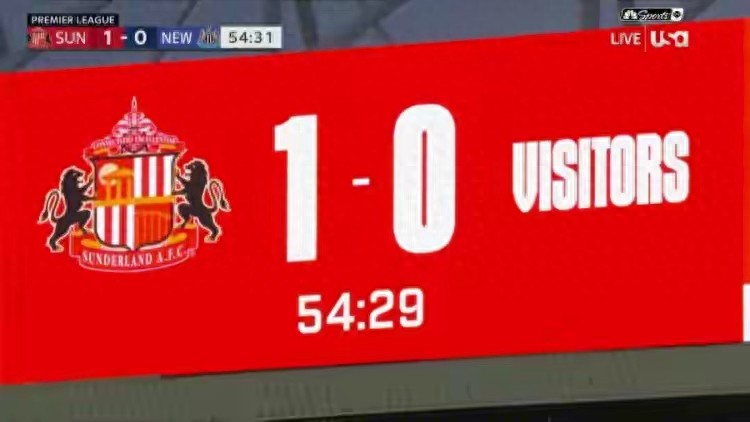 这到底是一场什么比赛?桑德兰在和谁踢?为什么对手没有队徽?这样的疑问就出现在本轮英超的一场比赛中。英超第16轮,迎来了久违的泰恩-威尔郡德比,这是两队真正的死敌球队,升班马桑德兰主场迎战纽卡斯尔。凭借着一个乌龙球,桑德兰主场1-0小胜纽卡斯尔。当桑德兰取得1-0领先的时候,桑德兰主场的比分牌上只有桑德兰的队徽,却没有纽卡斯尔的队徽,桑德兰工作人员用客队来标注,这在英超赛场,甚至五大联赛都是极其少见的情况。