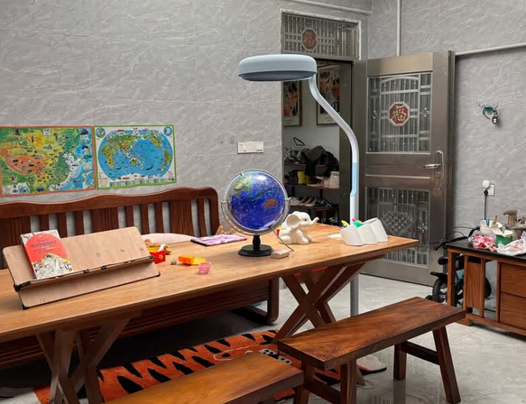 琪朗 ProMax的最大亮点在于采用了“上发光120°左右调节设计”,可以扩大光照面积,只需转一转就可以随意照亮想要照亮的区域,能消除室内暗角,改善孩子用眼光环境。