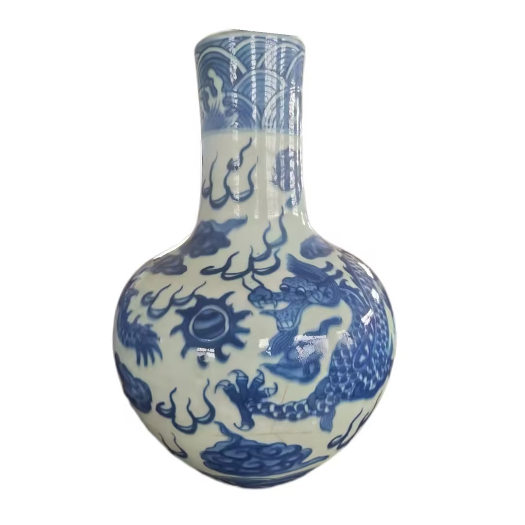 六、结语:青花之巅的价值未来这只高 30.5cm 的大明嘉靖青花龙纹天球瓶,是明代官窑青花收藏的 “价值图腾”。它以 “官窑龙纹的绝对性垄断” 为引擎,以 “回青料稀缺性与天球形制经典性” 为双轮,在收藏市场中释放出 “历史价值、艺术价值、皇权价值” 的三重能量。