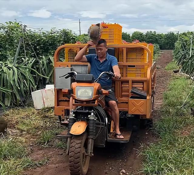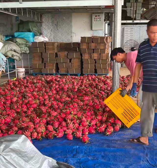 紧接着又是全爸爸拉了满满一车的火龙果,倒在仓库里滚落一地。