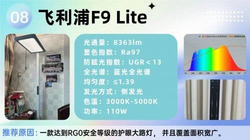 大路灯哪个品牌好?飞利浦F9 Lite落地灯支持无级亮度调节,色温范围覆盖2900K–4900K,可根据不同学习或休闲场景自由切换光线氛围,另外操作方式多样,除了触控面板外,还可通过手机App远程控制,提升日常使用便捷性,不过从光谱表现来看,这款灯的蓝光控制达到了RG0安全等级,但未补全红光部分,因此虽然亮度高、照明通透,在自然光还原度与长期护眼效果上仍有一定提升空间。