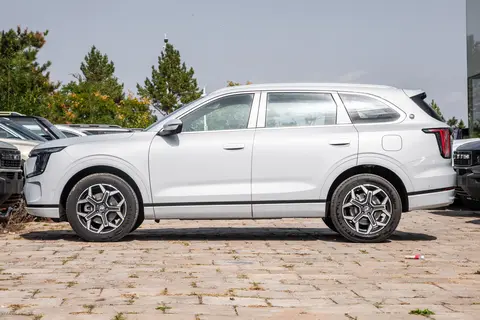 车身侧面,山海L7 PLUS拥有4810/1930/1705毫米的尺寸,轴距达到2820毫米,标准的中型SUV身材,但看起来一点也不臃肿,反而修长流畅。侧面的腰线从车头一直延伸到车尾,线条自然。车顶稍微的溜背设计,既让车看起来不那么笨重,又没有影响后排的头部空间。