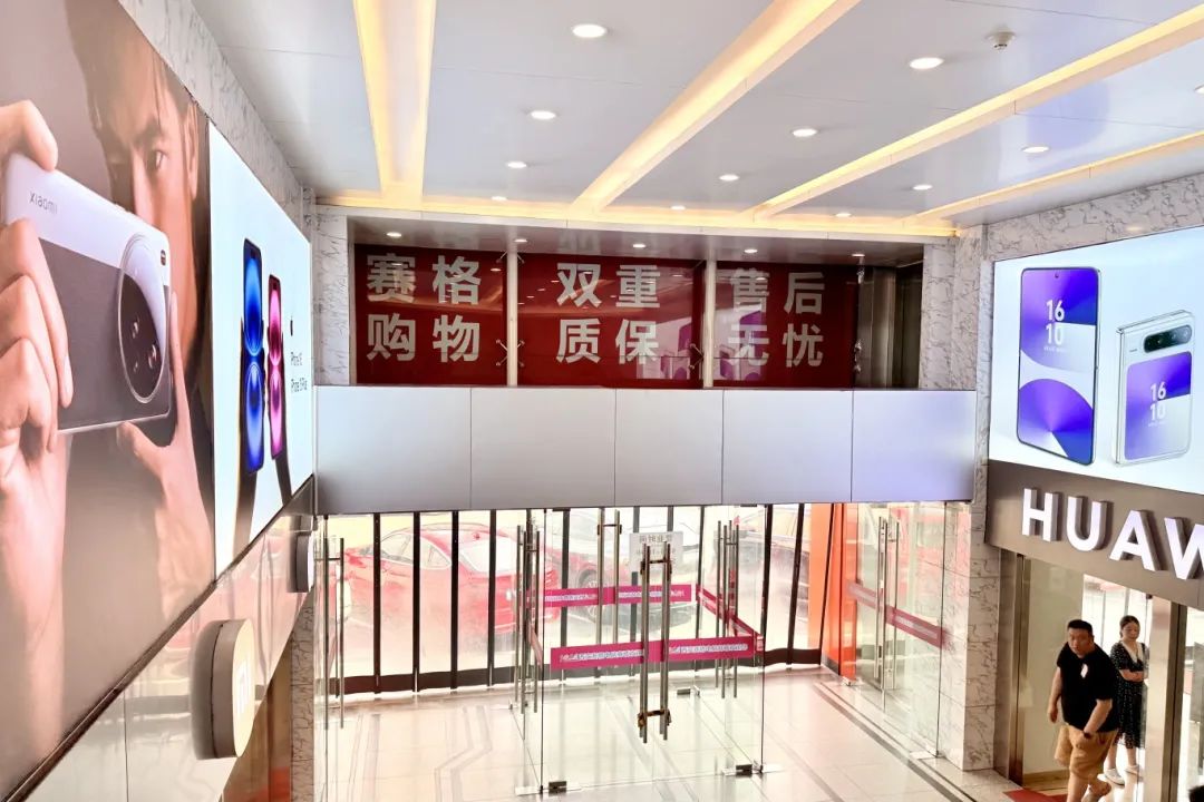 一楼,现在几乎都是各大手机品牌了,高大明亮的玻璃隔断充满科技感的灯光和装潢,都是华为、小米等等国产品牌,上次在这里看到的,似乎还是HTC和三星。