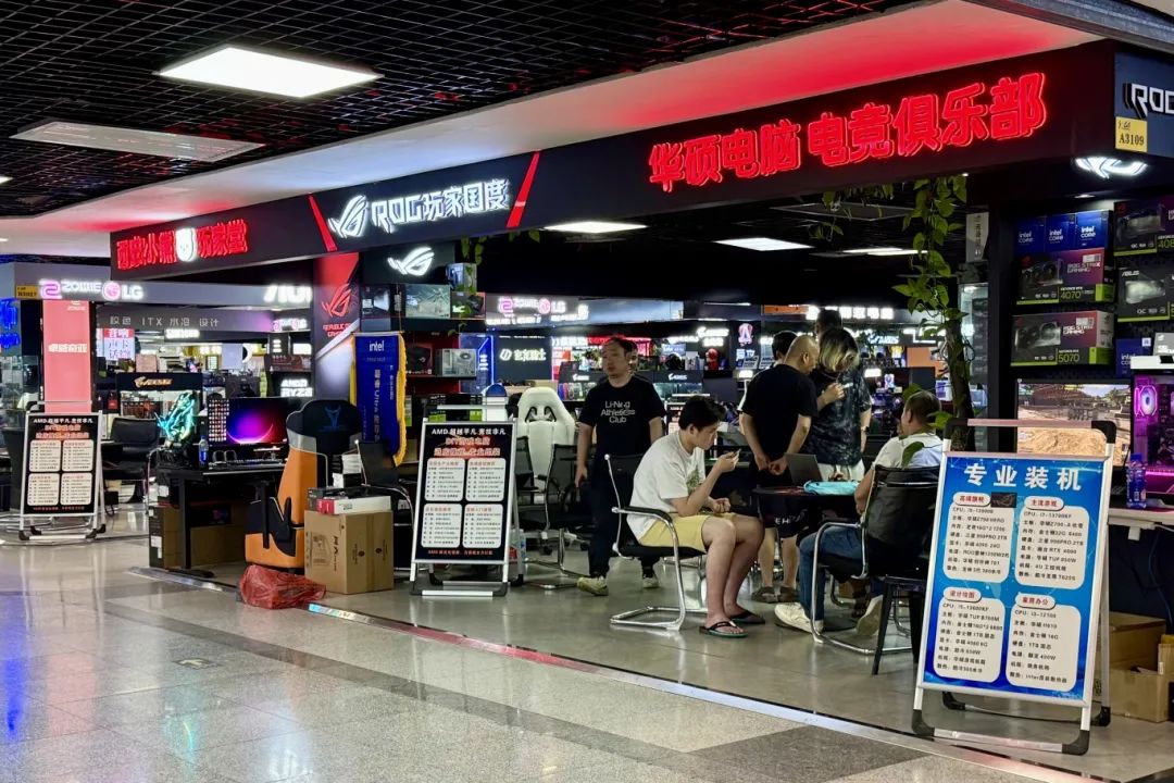 但是组装台式机的区域,情况又不一样了,到处都有发烧友的身影,有人甚至拿着装机清单和老板热烈讨论,旁边就是电竞俱乐部,埋头玩游戏的一群人,让人想起曾经火热、如今却接近消失的网吧。