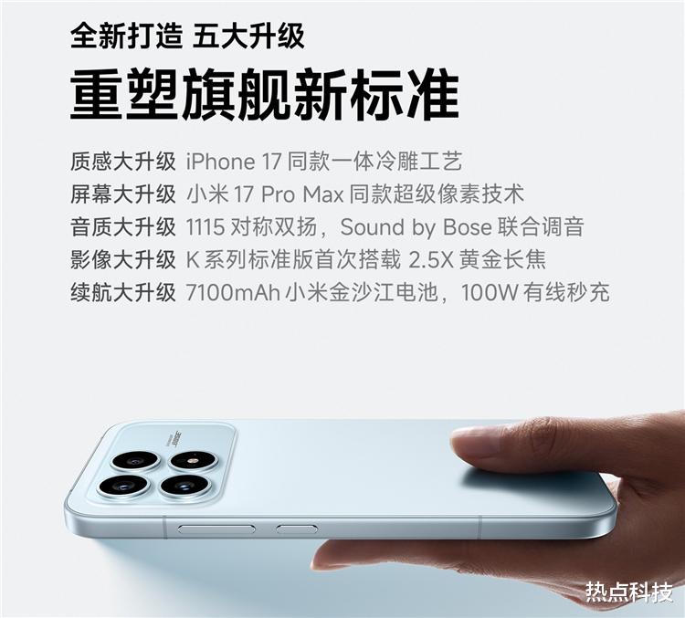 REDMI K90今日预热,官方正式公布了K90标准版的五大升级,包括质感、屏幕、音质、影像以及续航等方面。
