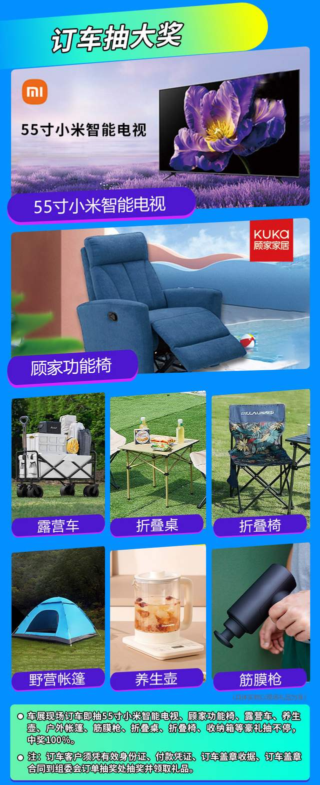 展会现场更将有丰富的福利活动。除了厂家直降、现金抵扣外,还有购车大礼包、置换补贴等福利等着消费者。